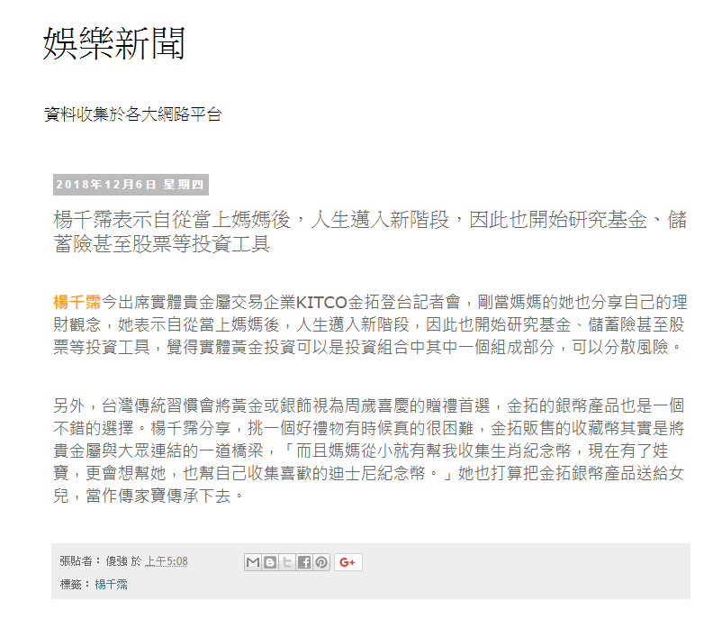 Kitco’s Launch in Taiwan_娛樂新聞(Online) 07/12/2018
