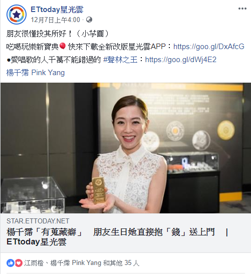 娛樂新聞(網絡)_楊千霈表示開始研究基金、儲蓄險甚至股票等投資工具